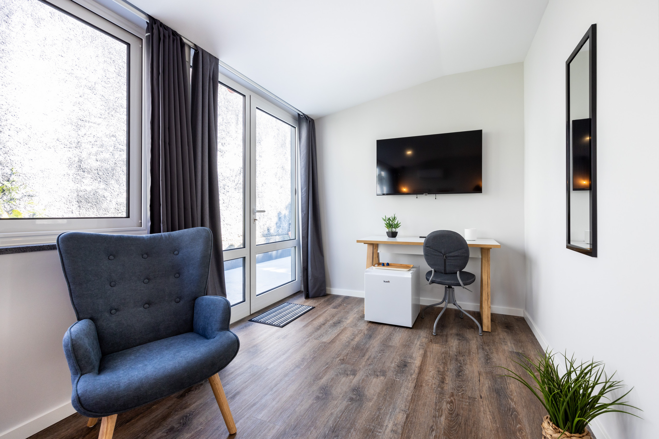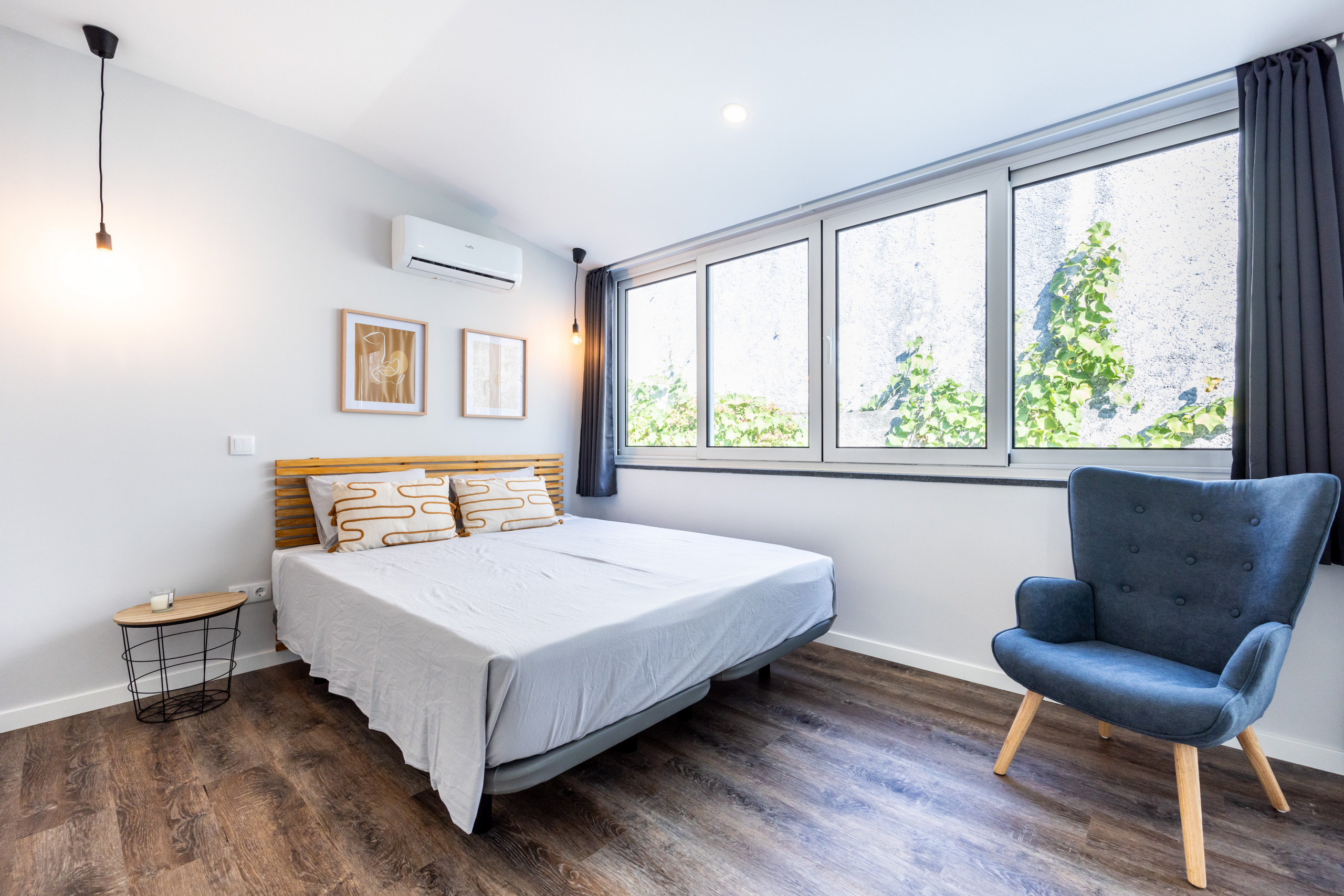 Modern Suites located in the centre of Angra do Heroismo, situated in a quiet residential area. Easy and free parking on the street. Decorated with taste and very functional. The rooms are equipped with air conditioning and heating system, private bathroom, work area with desk and Smart TV with cable channels. All rooms have access to a kitchen, living room with dining area, garden and outdoor area with Barbecue.